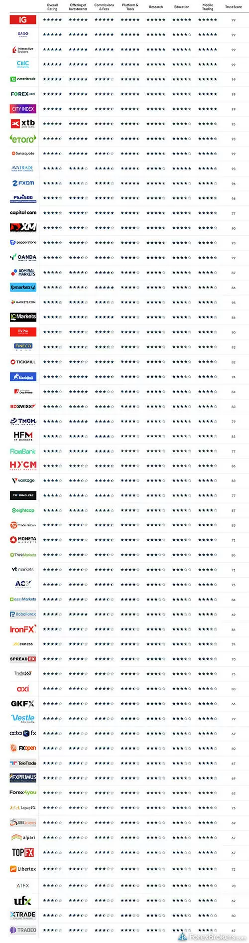 For the ForexBrokers.com 2019 Annual Review, we assessed 28 of the top forex brokers against 81 variables across seven ratings categories.